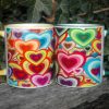 Fényes felületű fehér kerámia bögre lótuszvirág motívummal.