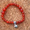 Az a karkötő karneol féldrágakőből készült, allergiamentes fém szívvel díszítve.