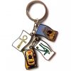 A fém termék kb. 11 cm hosszú, négy fényképet ábrázoló lógóval.